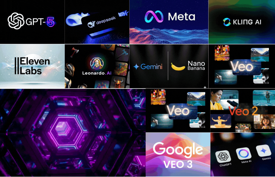 - Powered by Kling Pro, Runway Gen-3, Google VEO 3, Heygen, Synthesia.